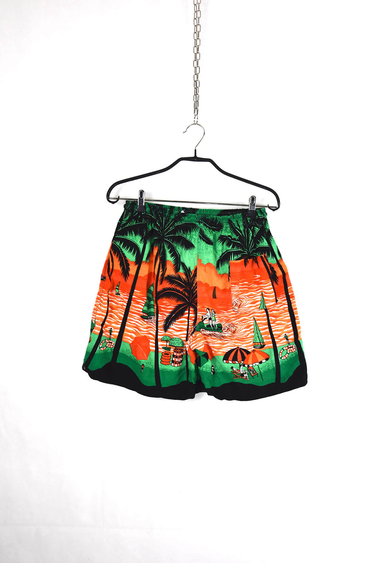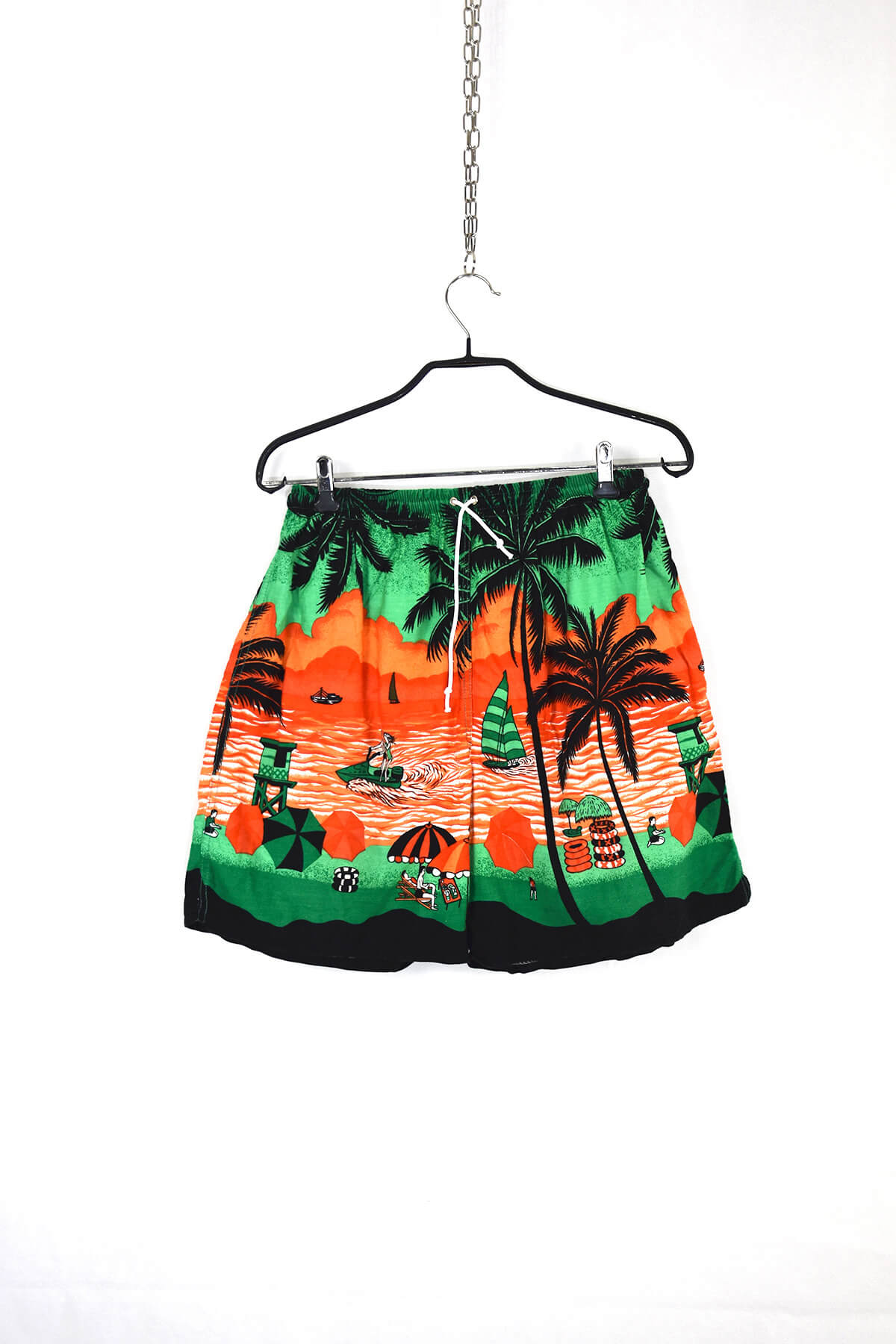 Escape to the beach in style with these retro-inspired shorts. Featuring a vibrant green and orange print, they evoke the carefree spirit of summer. Made from lightweight and breathable fabric, these shorts ensure all-day comfort. The adjustable drawstring waistband provides a secure and customizable fit, while the side pockets offer convenient storage for essentials. Whether you’re soaking up the sun or enjoying a beachside stroll, these shorts will keep you looking and feeling your best.