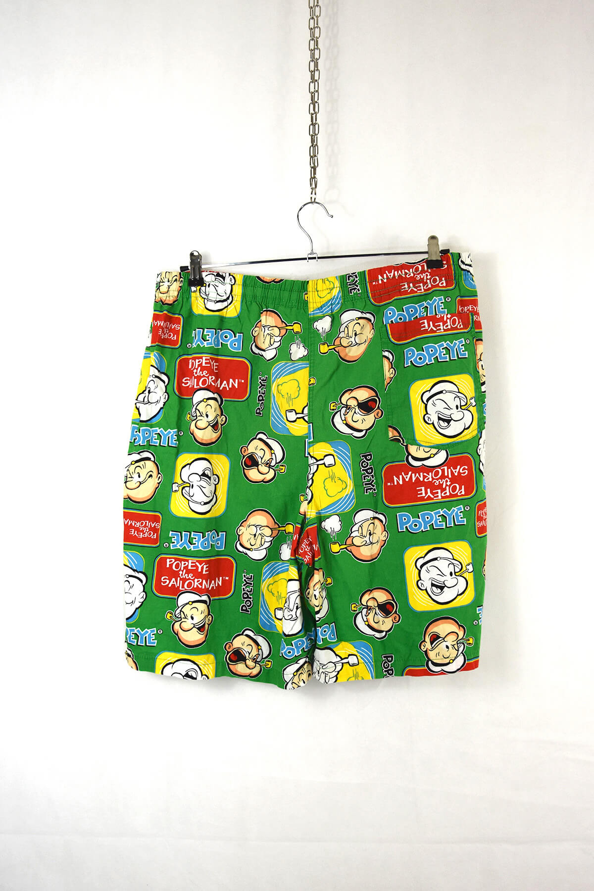 Relive childhood memories with these vibrant Retro Popeye Comic Printed Green Shorts. Featuring iconic Popeye comic strips, these shorts offer a nostalgic touch to your wardrobe. Made from soft and breathable cotton, they provide all-day comfort. The adjustable drawstring waistband ensures a perfect fit, while the side pockets offer convenient storage. Stand out from the crowd with these unique and eye-catching shorts, perfect for casual outings or as a collector’s item.