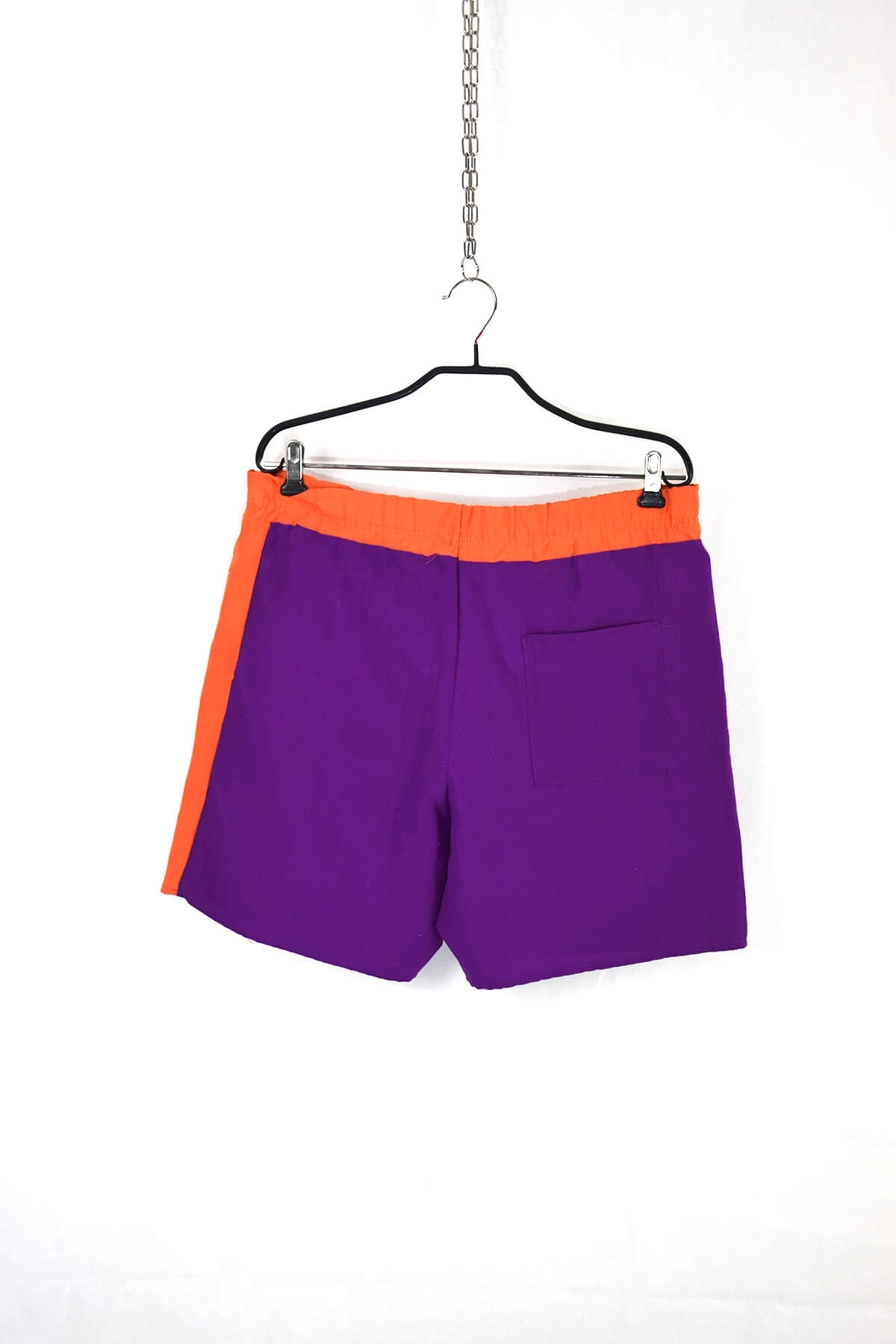 Step back in time with these retro-inspired shorts, featuring a vibrant purple and orange design. Crafted from breathable fabric, they offer ultimate comfort and style. The elastic waistband ensures a perfect fit, while the side pockets provide ample storage for your essentials. Embrace the nostalgia and make a statement with these eye-catching shorts.