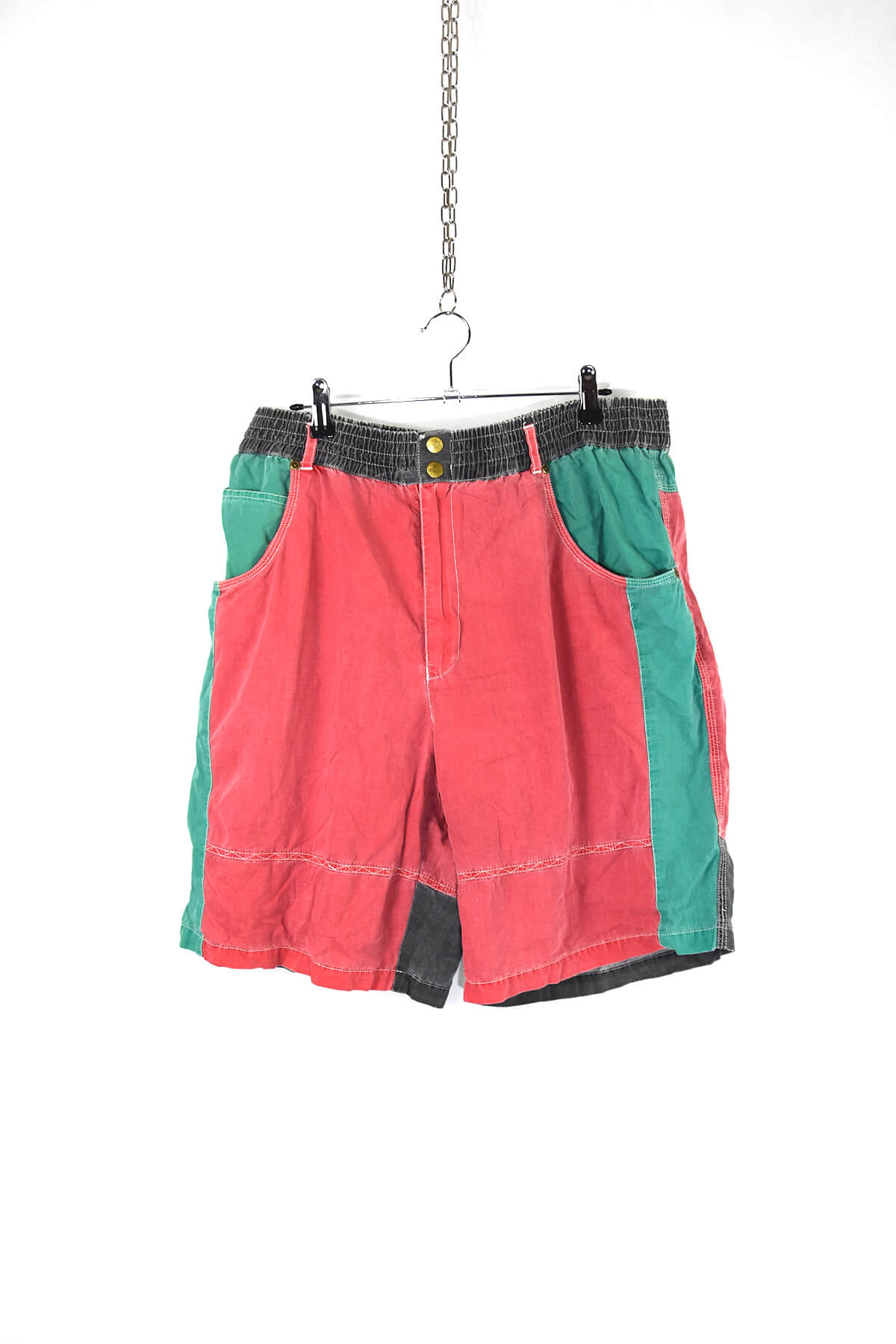 Step back in time with these retro-inspired shorts, featuring a vibrant red and green washed color print. Their unique design evokes a nostalgic charm, while the comfortable fit and breathable fabric ensure all-day comfort. Perfect for casual outings or adding a touch of vintage flair to your wardrobe.