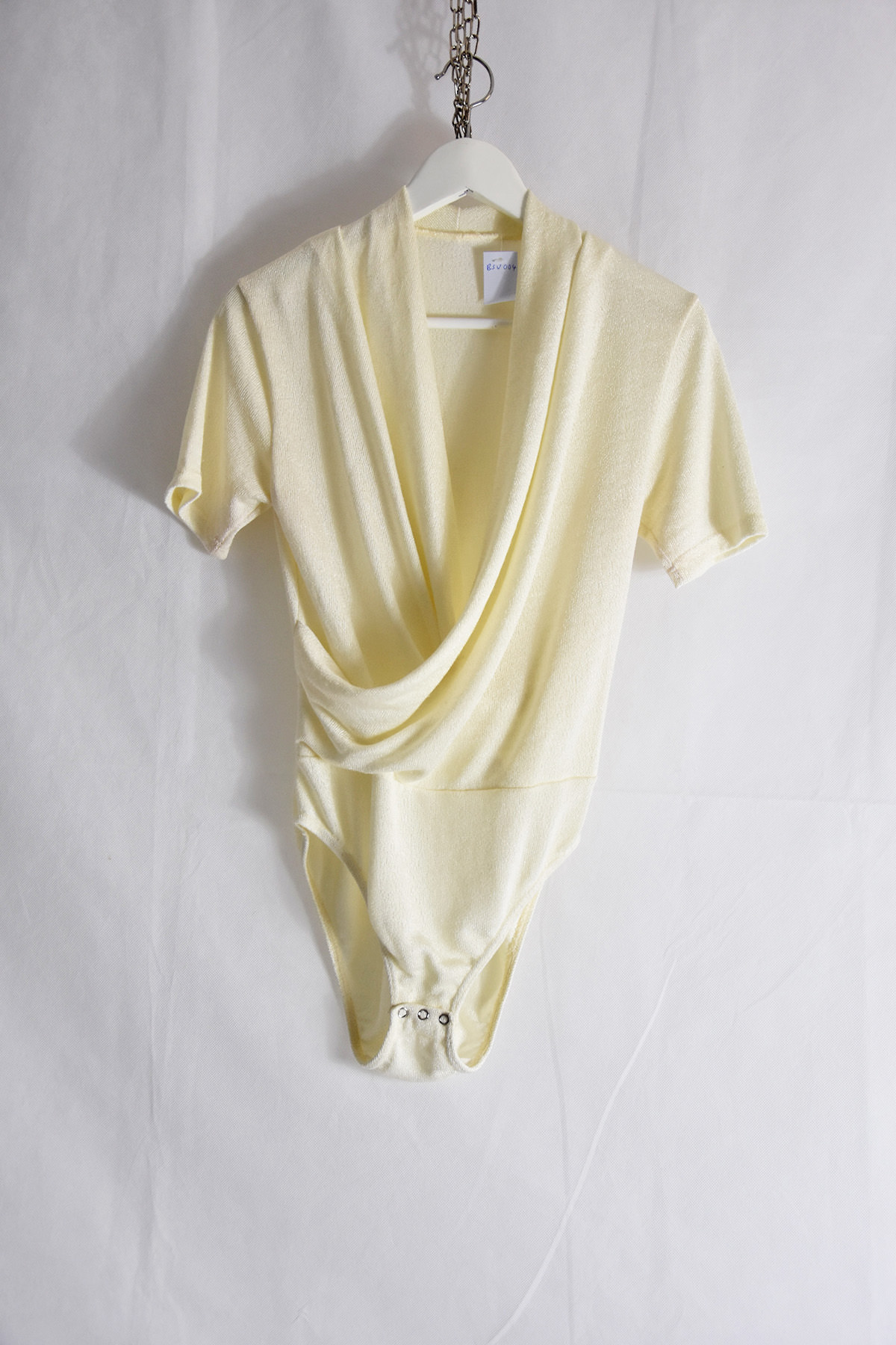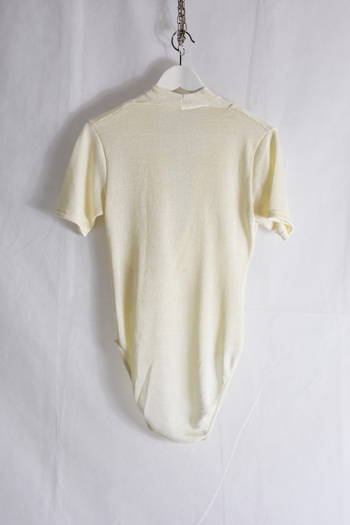 Indulge in effortless style with our exquisite short-sleeved cream bodysuit. Crafted from premium fabric, it offers a soft and comfortable fit that flatters your silhouette. Its versatile design seamlessly transitions from casual to formal occasions, making it a wardrobe essential.