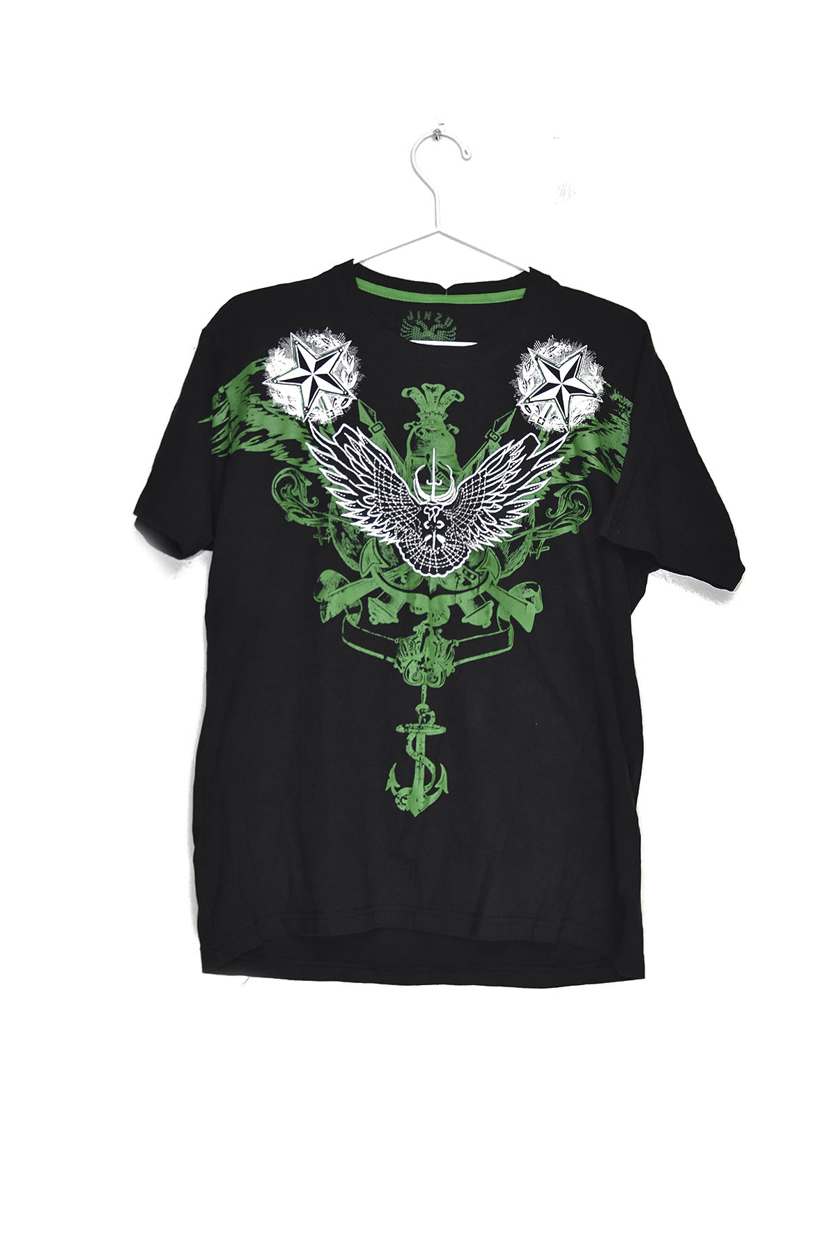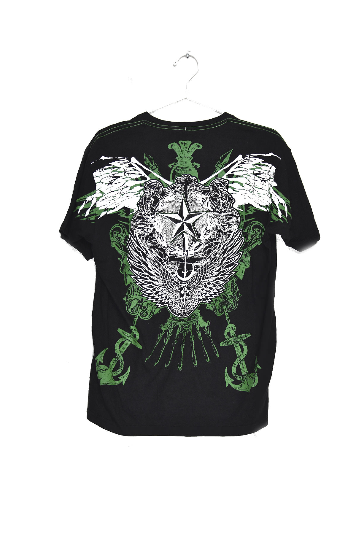 Elevate your wardrobe with our captivating Star and Anchors Design Print Black T-shirt in size L. This stylish tee boasts an eye-catching print featuring celestial stars and nautical anchors, creating a unique and alluring aesthetic. Crafted from premium cotton, it offers exceptional comfort and breathability, ensuring all-day wearability. Its classic fit and versatile black color make it a wardrobe staple that can be effortlessly paired with various outfits. Whether you’re embarking on a nautical adventure or simply seeking a touch of celestial charm, this t-shirt is the perfect choice.