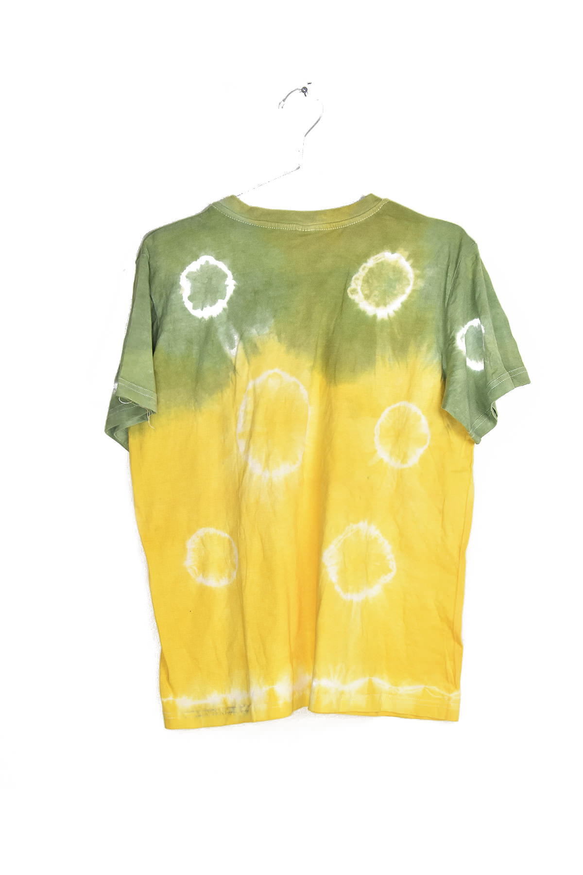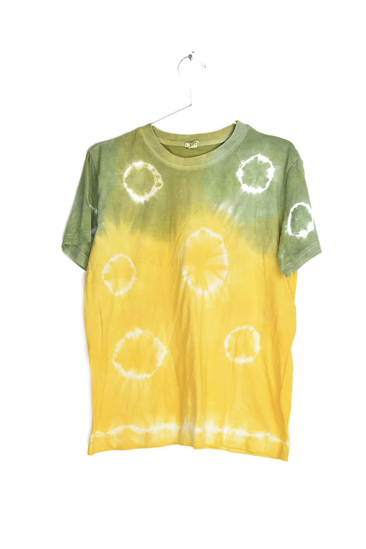 Vibrant tie-dye t-shirt in shades of green and yellow, crafted from soft and breathable fabric. Its unique design adds a touch of bohemian flair to any outfit, while its comfortable fit ensures all-day wearability. Perfect for casual outings, festivals, or simply adding a pop of color to your wardrobe.