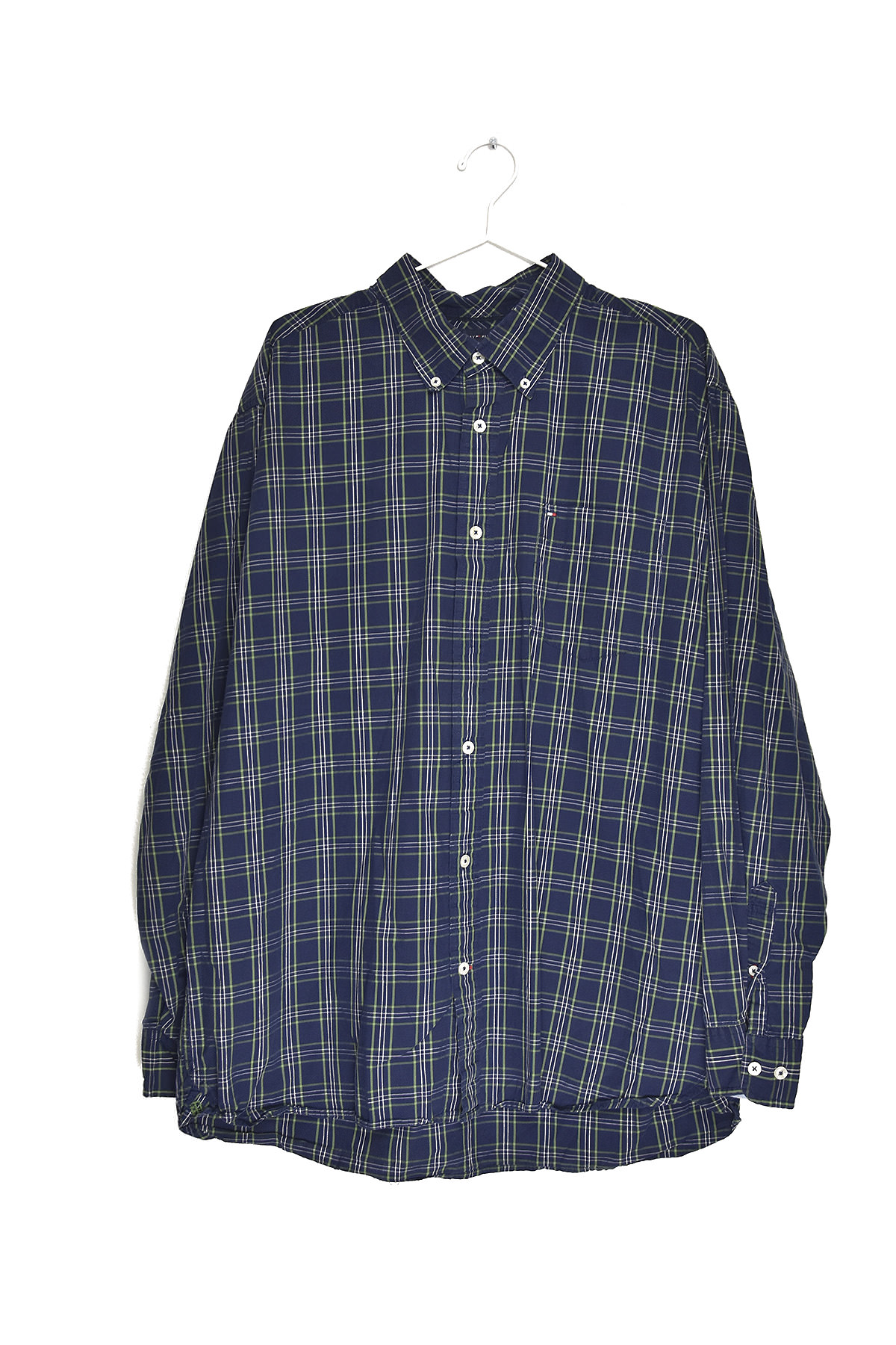 Tommy Hilfiger’s XL dark blue and green check shirt exudes sophistication and style. Crafted from premium cotton, it offers exceptional comfort and breathability. The classic check pattern adds a timeless touch, while the button-down collar and adjustable cuffs ensure a perfect fit. Its versatility makes it suitable for both casual and formal occasions, making it a wardrobe staple for the discerning gentleman.