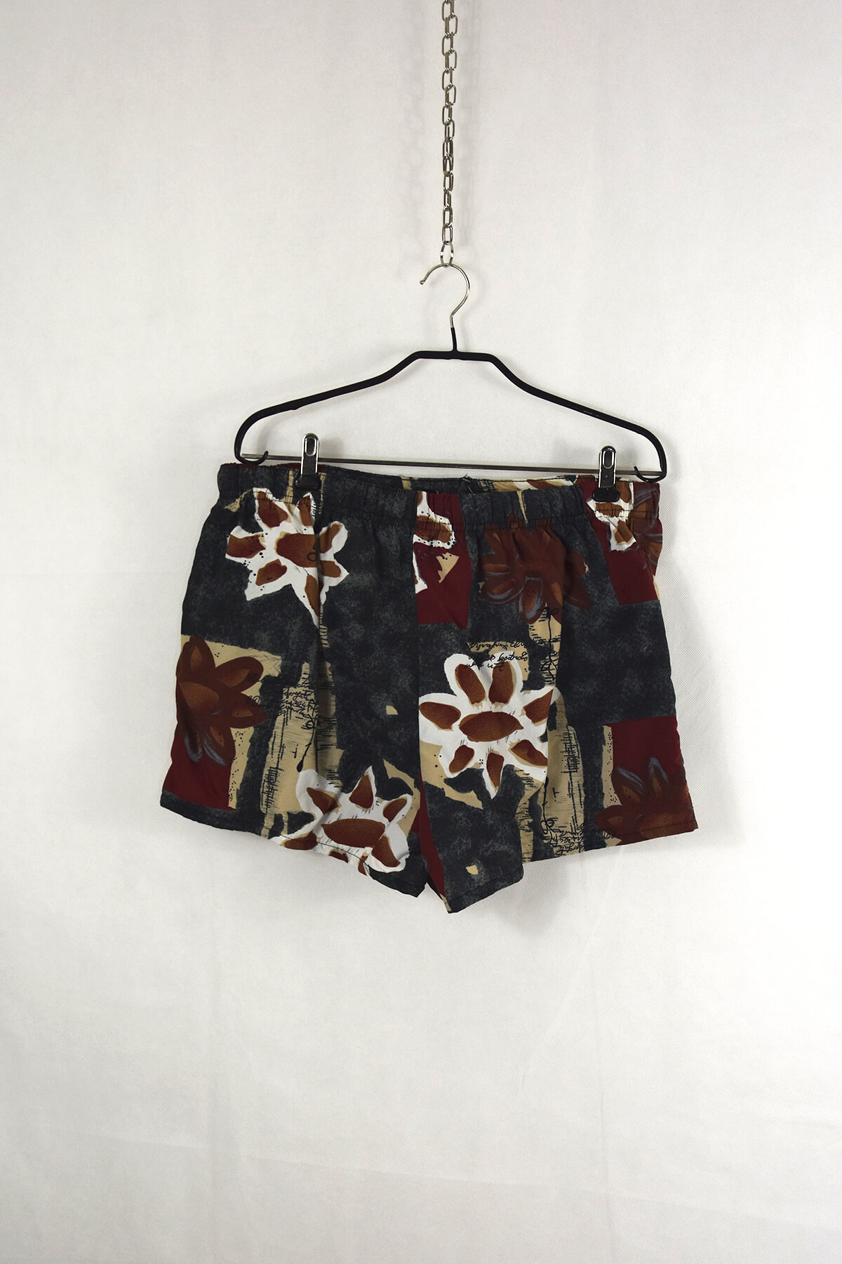 Embrace the allure of vintage with these captivating black and brown abstract design shorts. Their unique pattern exudes an artistic flair, while the comfortable fit ensures all-day wearability. Perfect for casual outings or adding a touch of bohemian chic to your wardrobe, these shorts are a must-have for fashion-forward individuals seeking a statement piece.