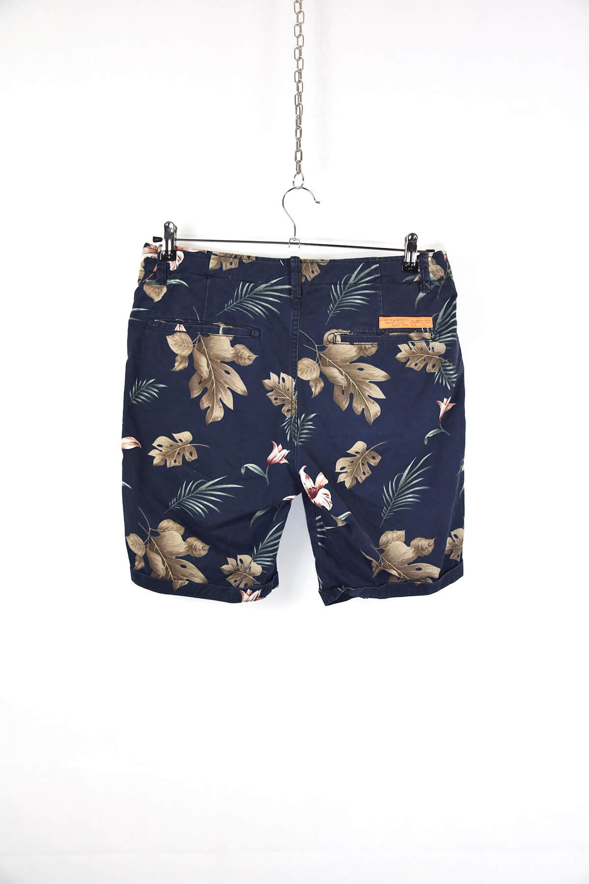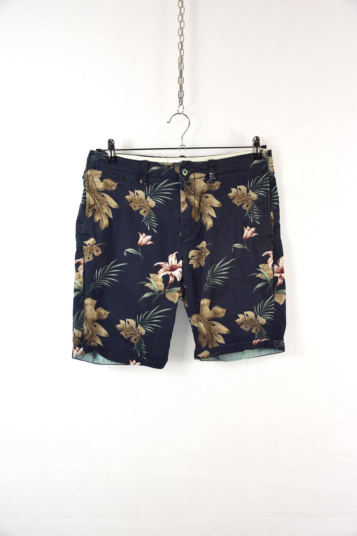 Vintage leaves and flower print black men shorts – 31
