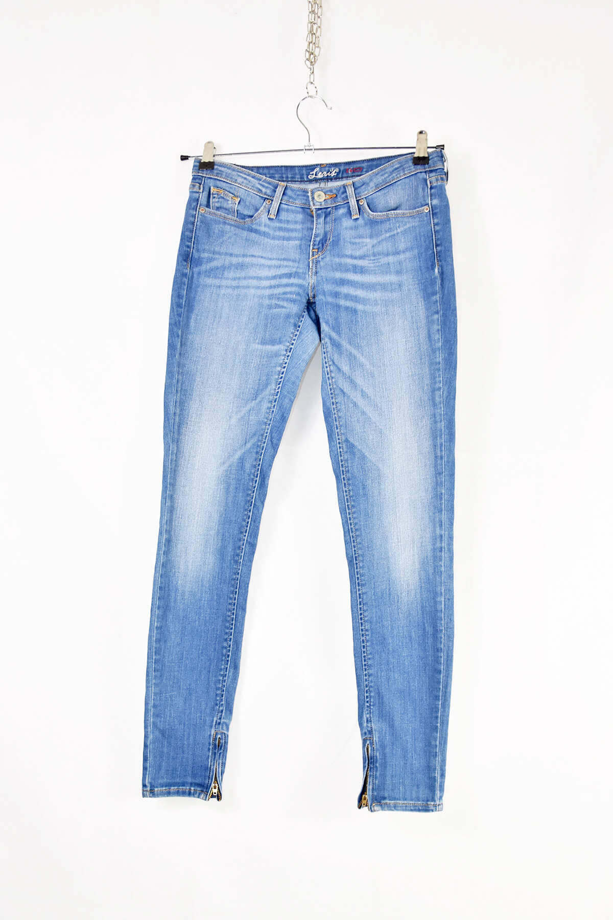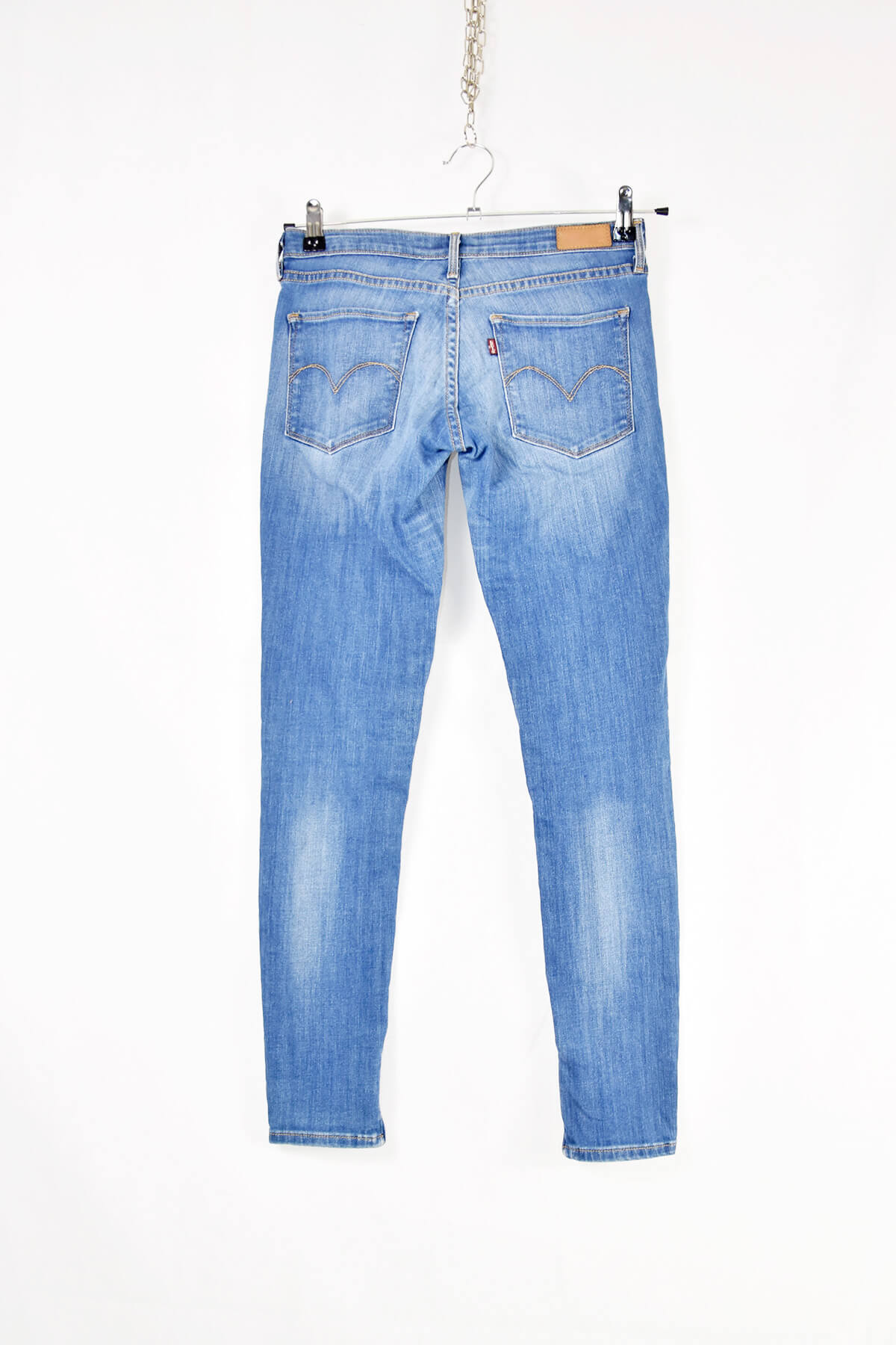 Elevate your wardrobe with these iconic Vintage Levi’s blue skinny jeans. Crafted from premium denim, they offer a flattering and comfortable fit with a 26-inch waist and 30-inch inseam. Their classic blue wash and timeless design add a touch of vintage charm to any outfit. The skinny silhouette accentuates your curves, while the high-quality construction ensures durability and longevity. Experience the perfect blend of style and comfort with these must-have Levi’s jeans.