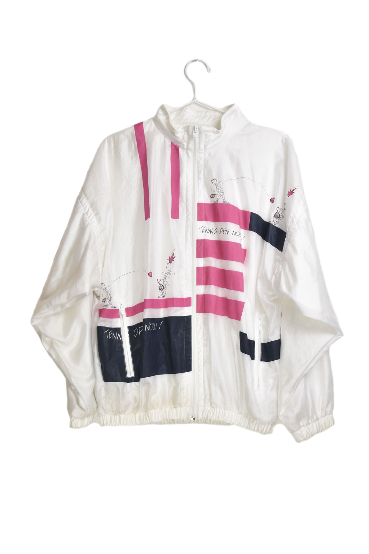 Step back in time with our vintage tennis-inspired summer jacket. Its classic white and pink design evokes the golden age of tennis, while its lightweight fabric keeps you cool and comfortable on warm days. The jacket features a full-zip front, two side pockets, and a stylish ribbed collar and cuffs. Whether you’re hitting the court or just enjoying a summer day, this jacket will add a touch of vintage charm to your look.