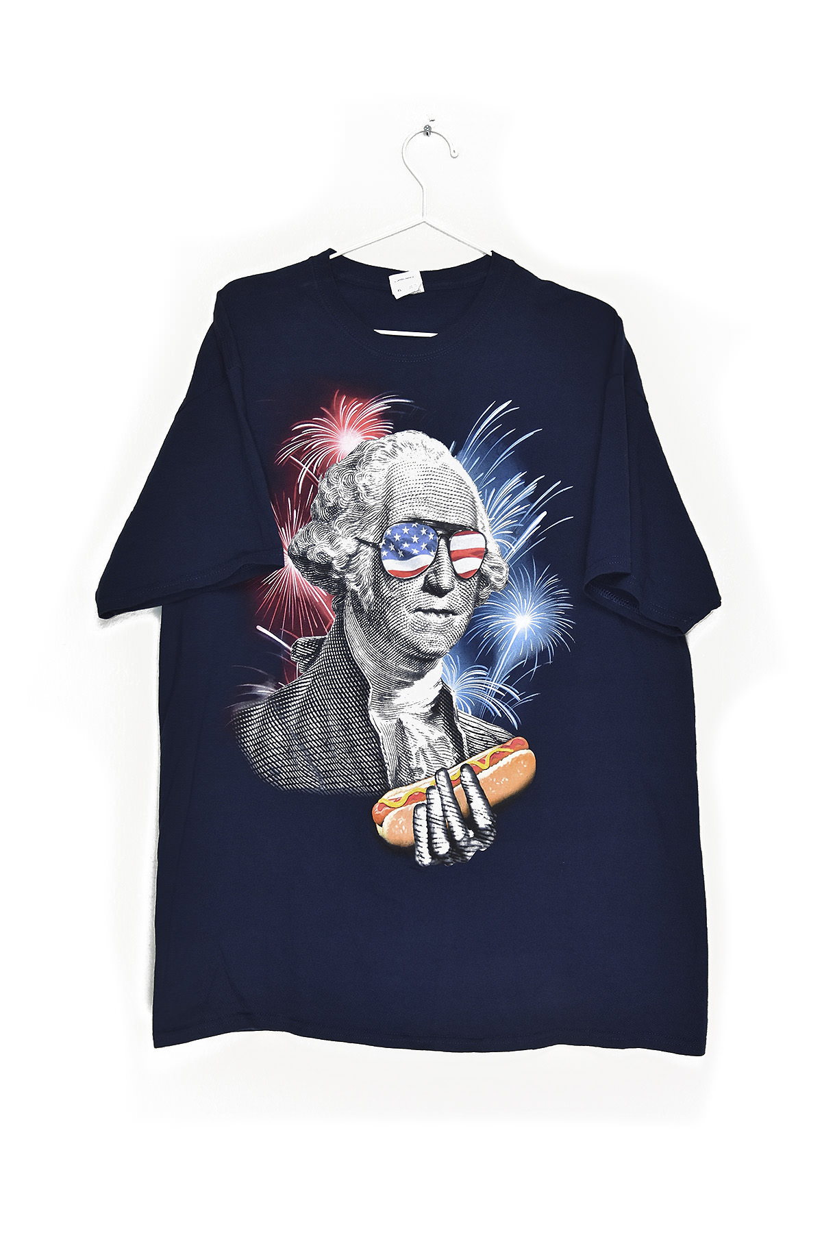 Celebrate Independence Day in style with our exclusive Washington 4th of July Hotdog Print Navy Blue T-shirt in XL. Featuring a vibrant hotdog graphic, this patriotic tee is perfect for parades, barbecues, and all your summer festivities. Made from soft, breathable cotton, it offers exceptional comfort and durability. Show your American pride and make a statement with this unique and eye-catching t-shirt.