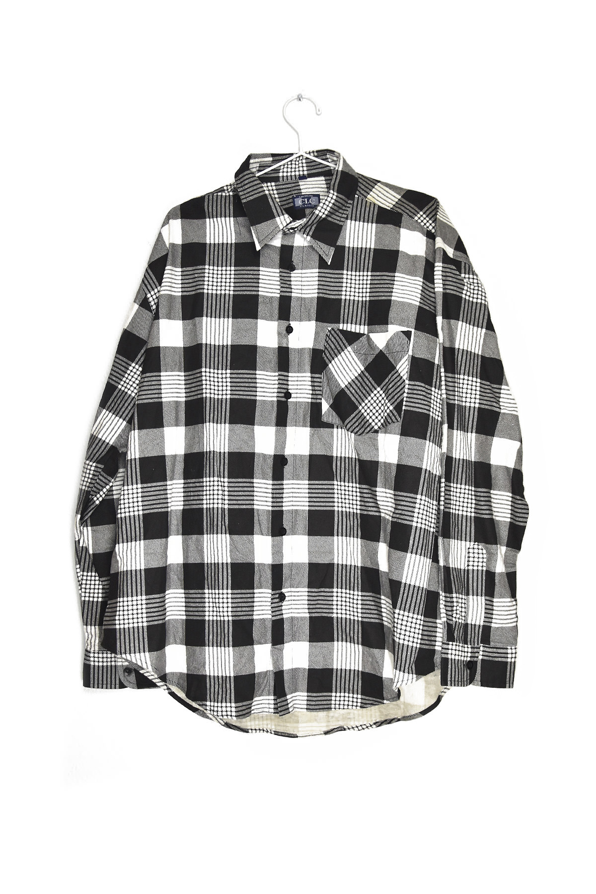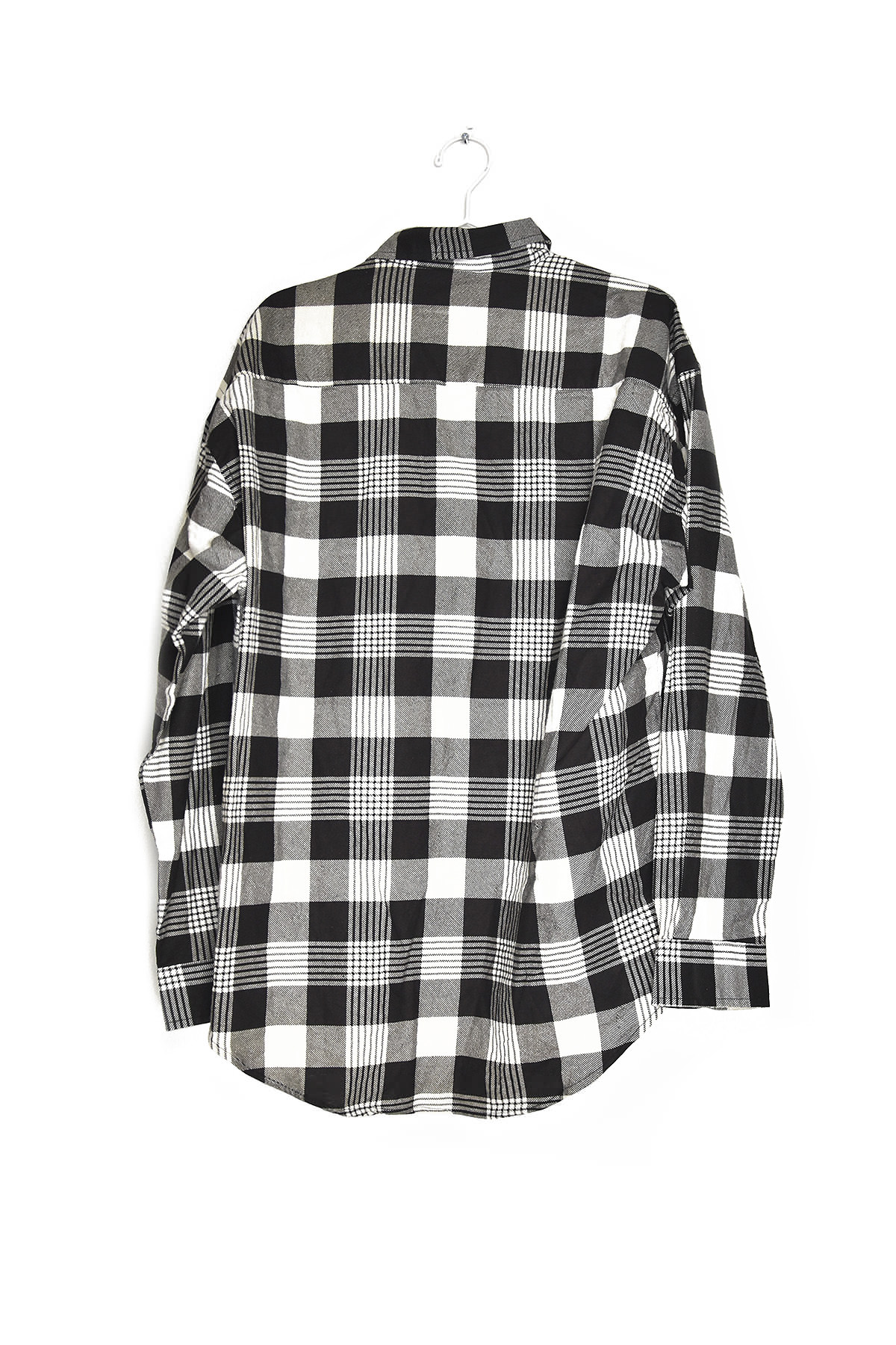 Indulge in timeless style with our exclusive White and Black Checkered Flannel Shirt in XL. Crafted from premium flannel, this shirt exudes warmth and comfort. Its classic checkered pattern adds a touch of sophistication, while the oversized fit ensures a relaxed and effortless look. Perfect for layering or wearing on its own, this versatile piece is a wardrobe staple that will elevate any casual ensemble.
