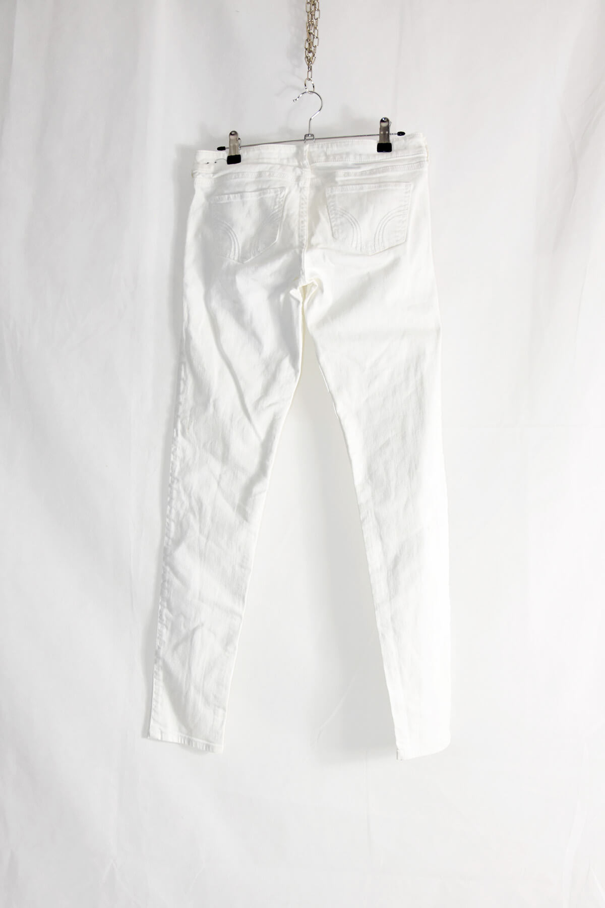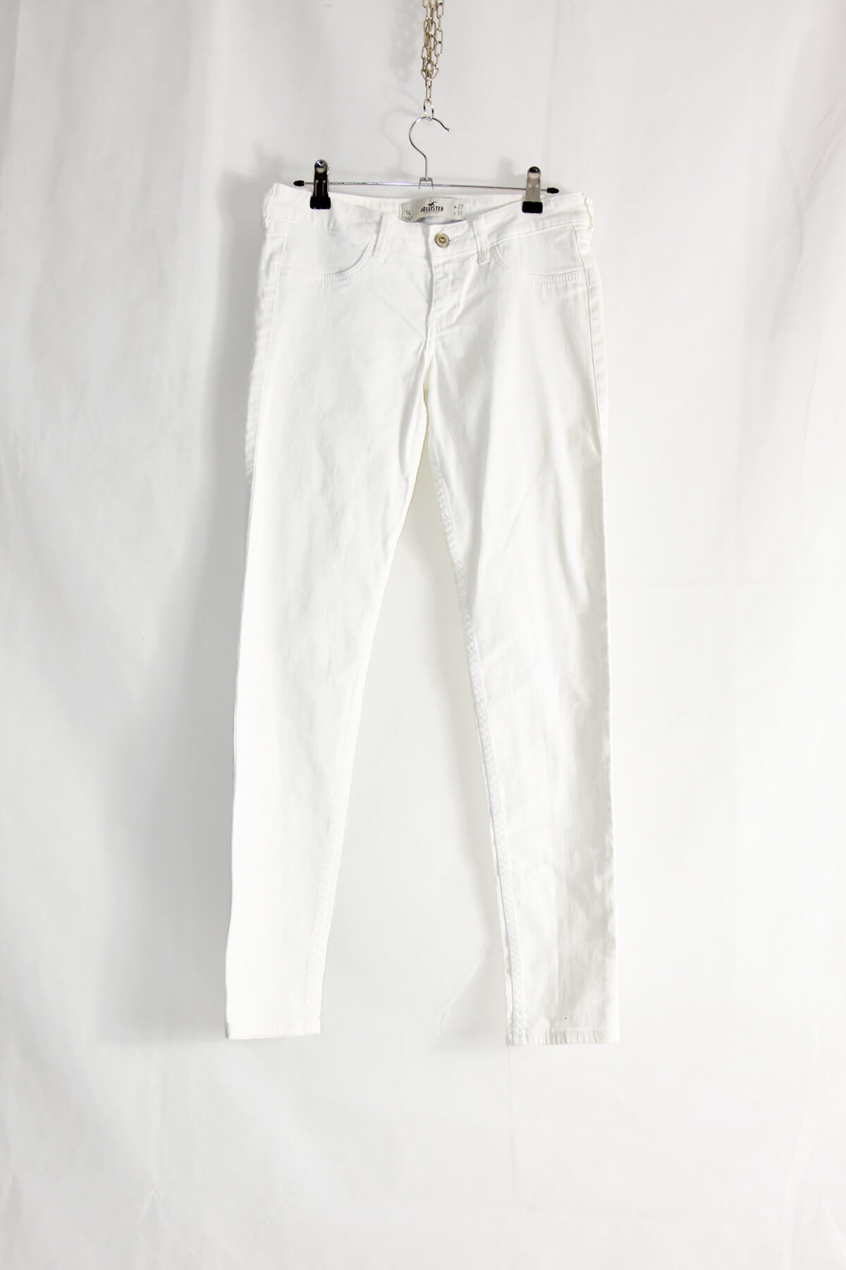 Elevate your wardrobe with Hollister’s white skinny jeans, crafted in a flattering 27/31 size. These jeans boast a sleek and modern silhouette that accentuates your curves, while the classic white hue offers versatility and timeless style. Made from premium denim, they provide both comfort and durability, ensuring you stay stylish and comfortable all day long.